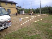 着工しました。まずは基礎の基準となる丁張りを施工しました。